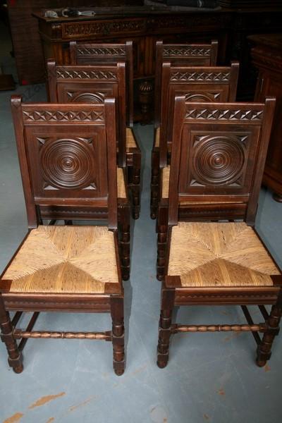 Soubor 6-ti ks židlí s kruhovým motivem.