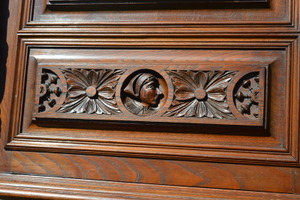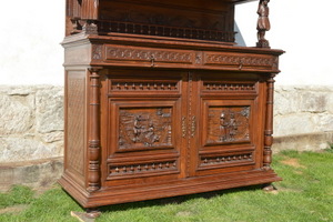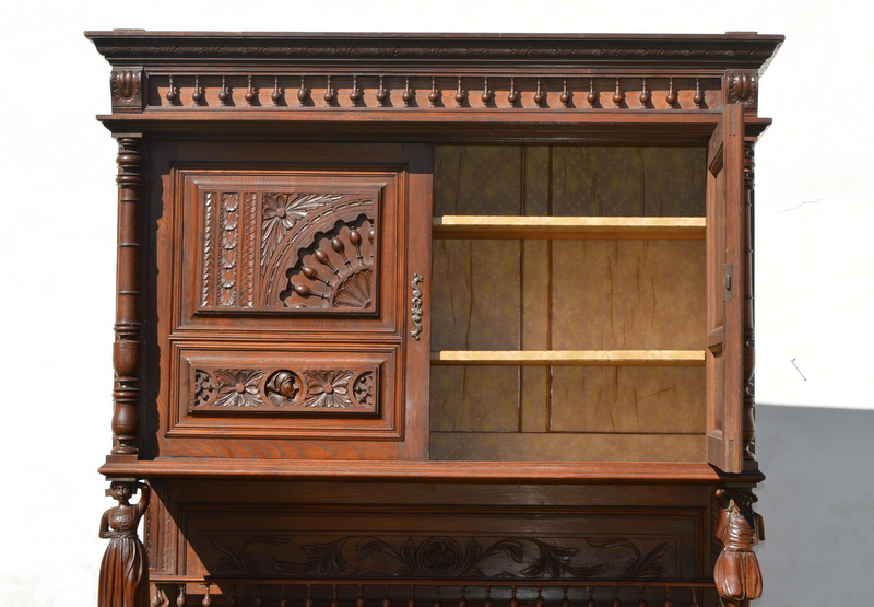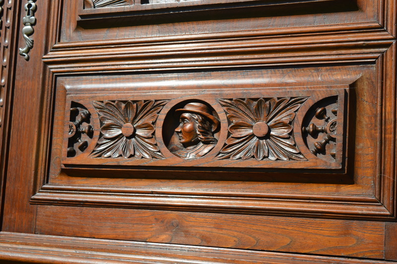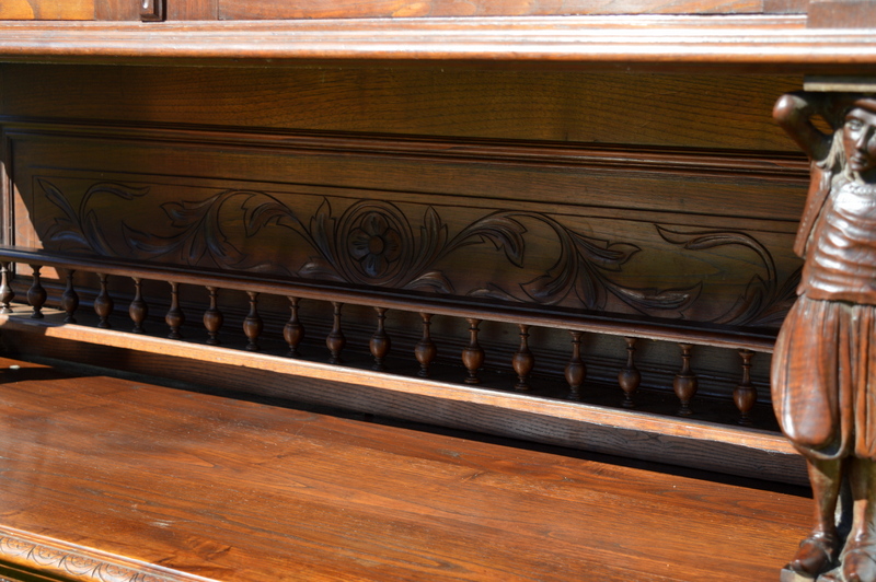 Starý dubový sekretář - jídelní skříň s bohatou řezbou