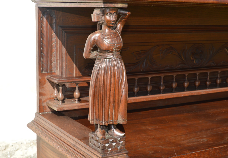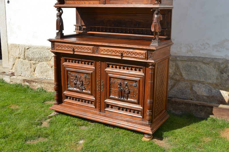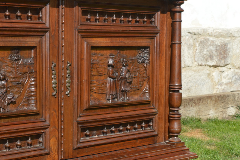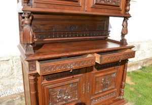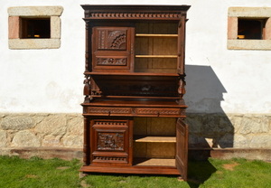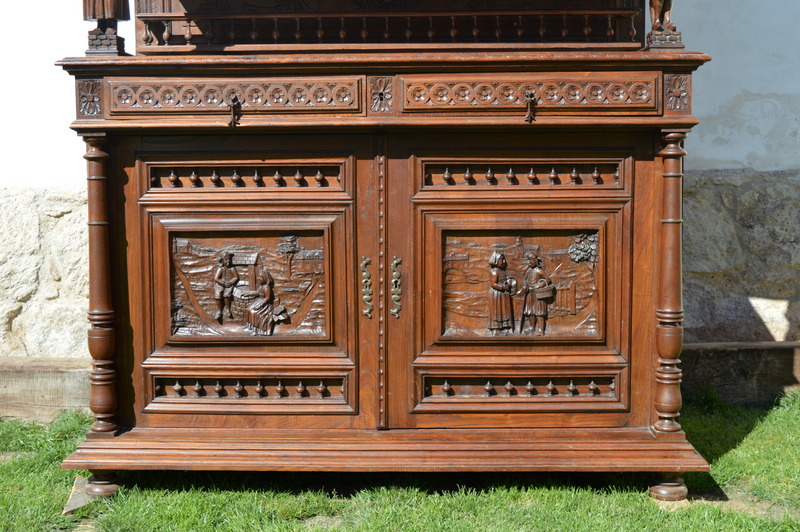 - Starý dubový sekretář - jídelní skříň s bohatou řezbou