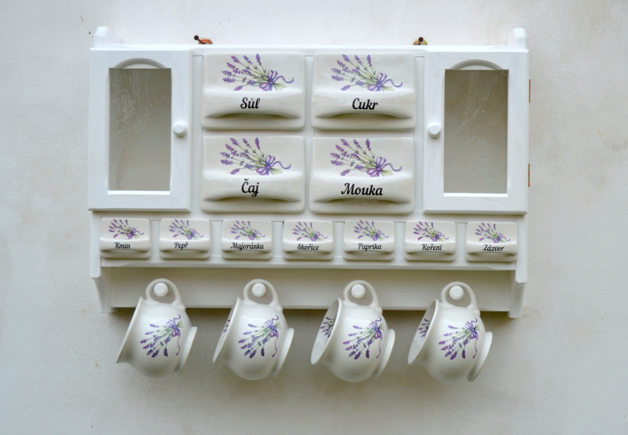 - Dřevěná police velká s kořenky - motiv levandule, police bíláSkladem5 900 Kč/ ks